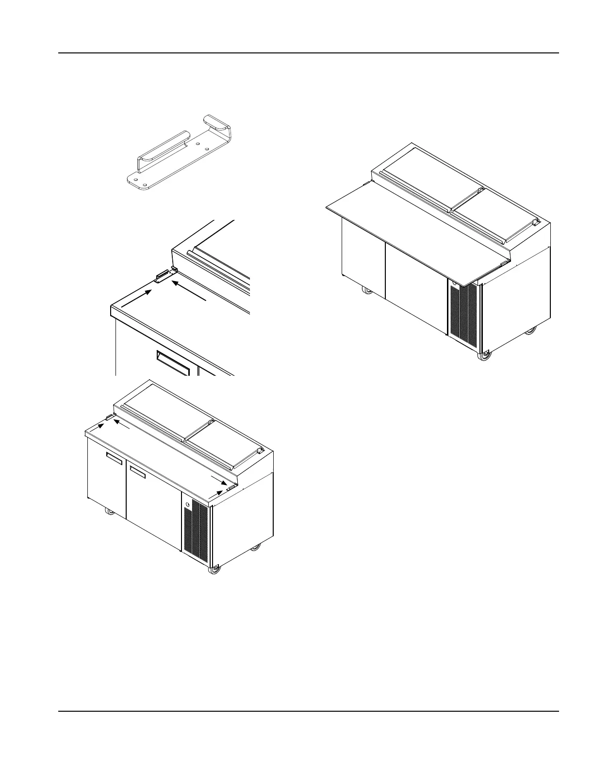 5. Secure each bracket to the Pizza Table with four 0.125”