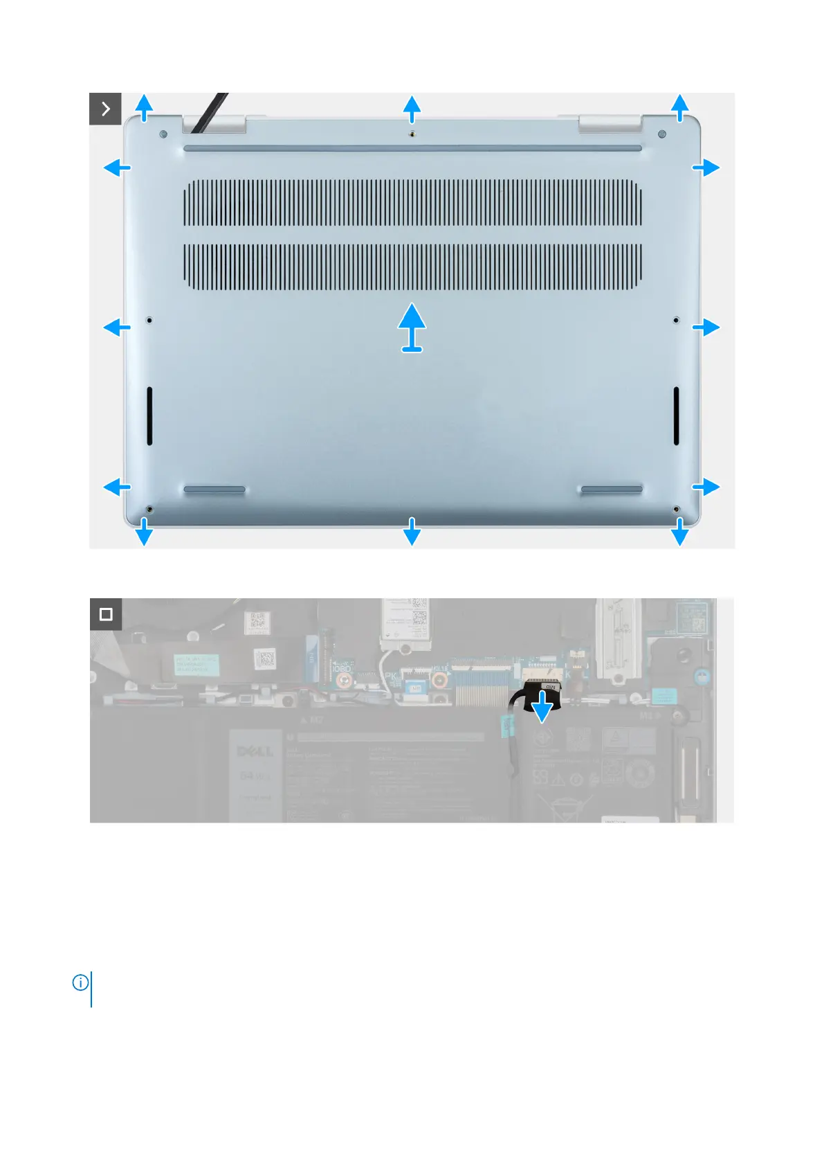 battery cable from the system board. To disconnect the battery cable, follow steps 5 and 6.