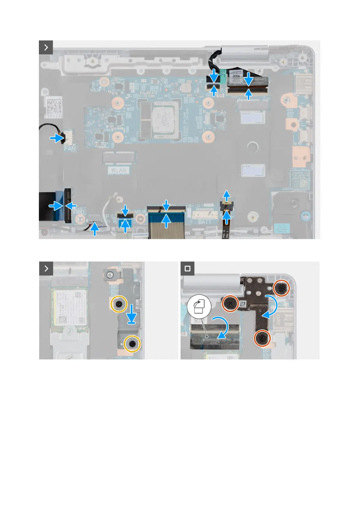 1. Position the system board at an angle to the palm-rest and keyboard assembly.