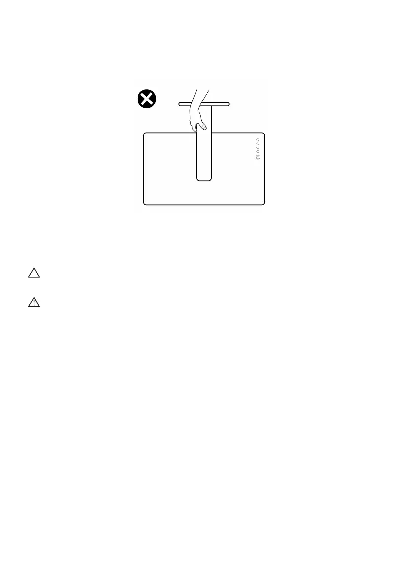 • When lifting or moving the monitor, do not turn the monitor upside down