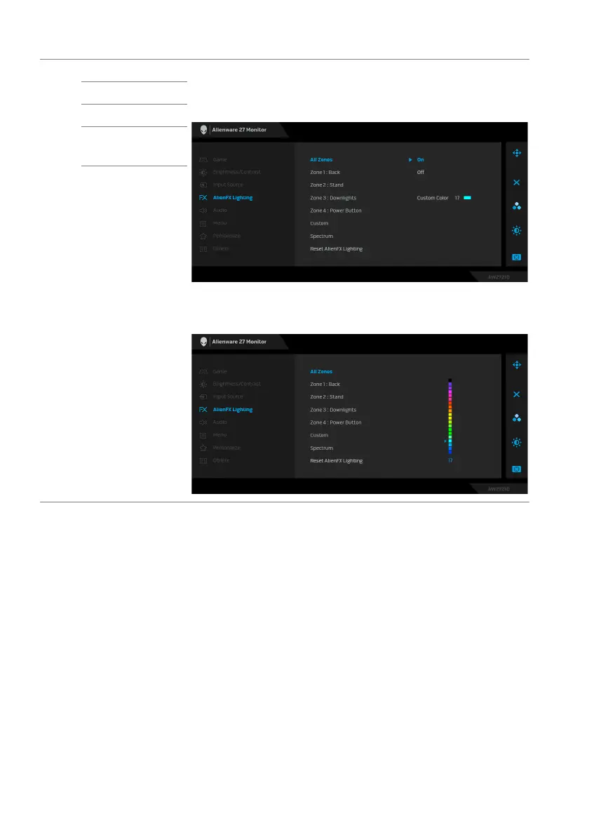 All Zones To specify an LED lighting color for the selected area,