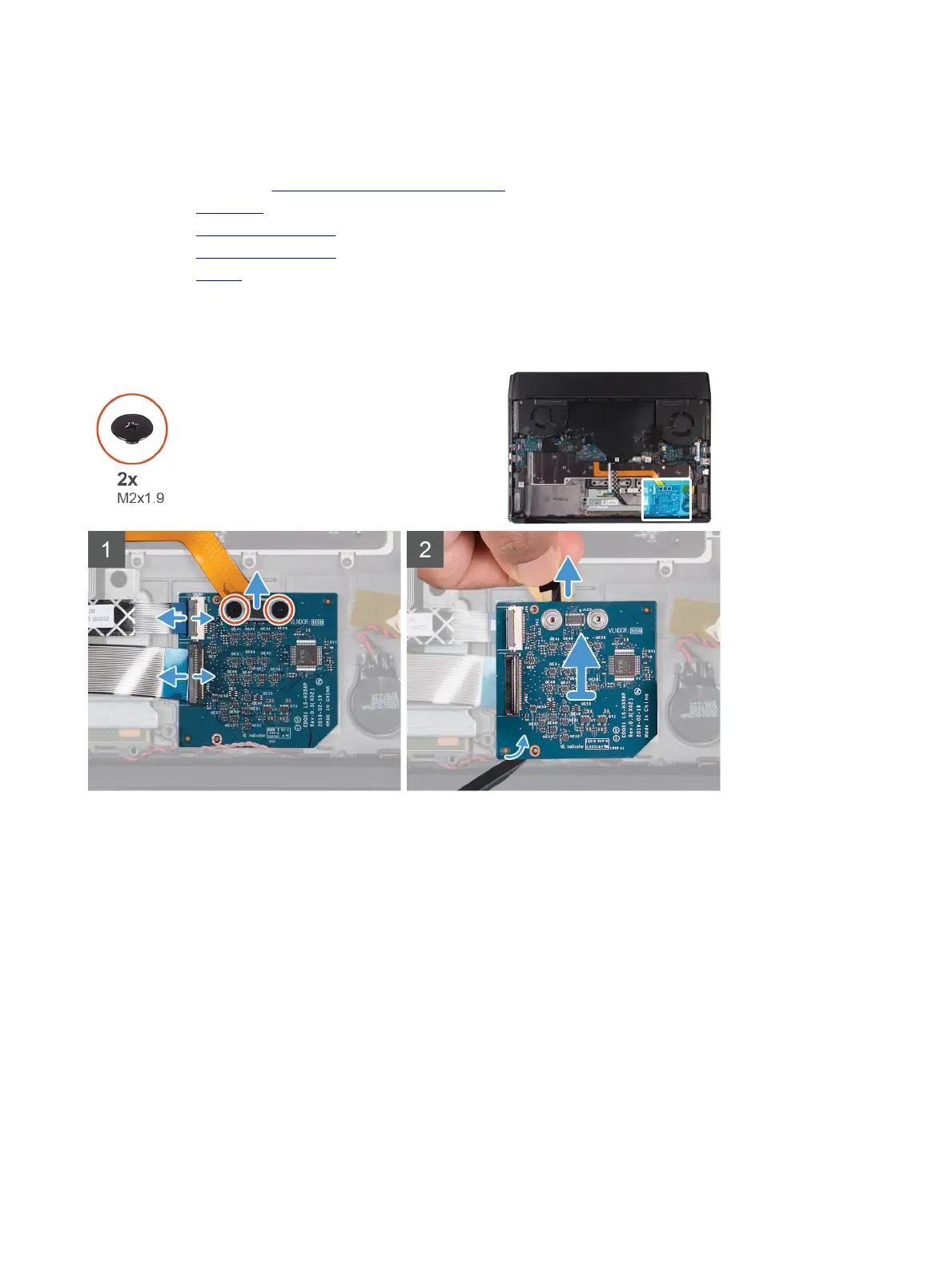 1 Remove the two screws (M2x1.9) that secure the keyboard-backlight cable to the keyboard-controller board.