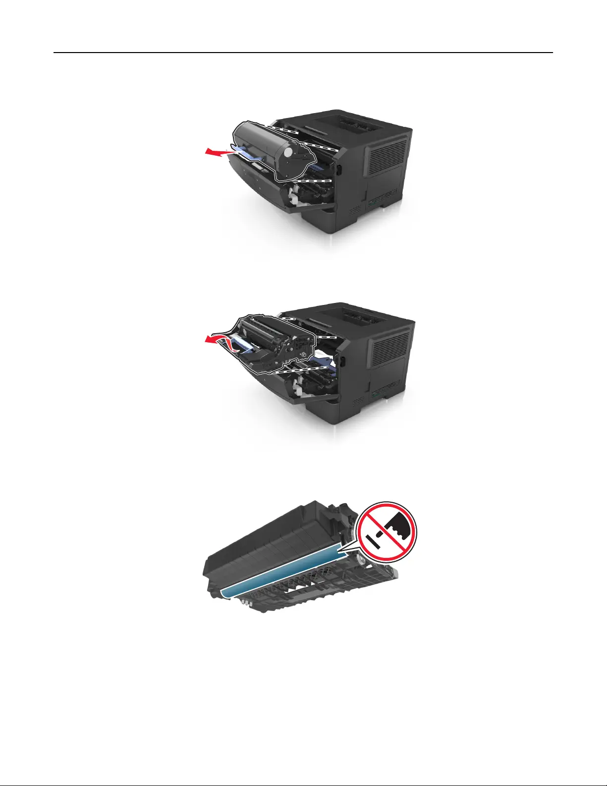 Warning—Potential Damage: Do not touch the photoconductor drum. Doing so may affect the print quality of