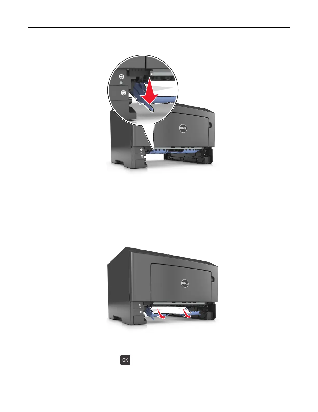 Note: If the jammed paper is not visible in the duplex area, then open the rear door, and then gently remove the