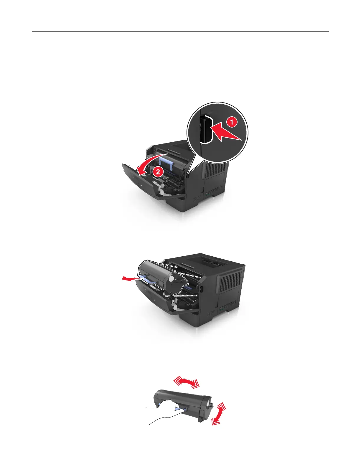 4 Shake the new cartridge to redistribute the toner.