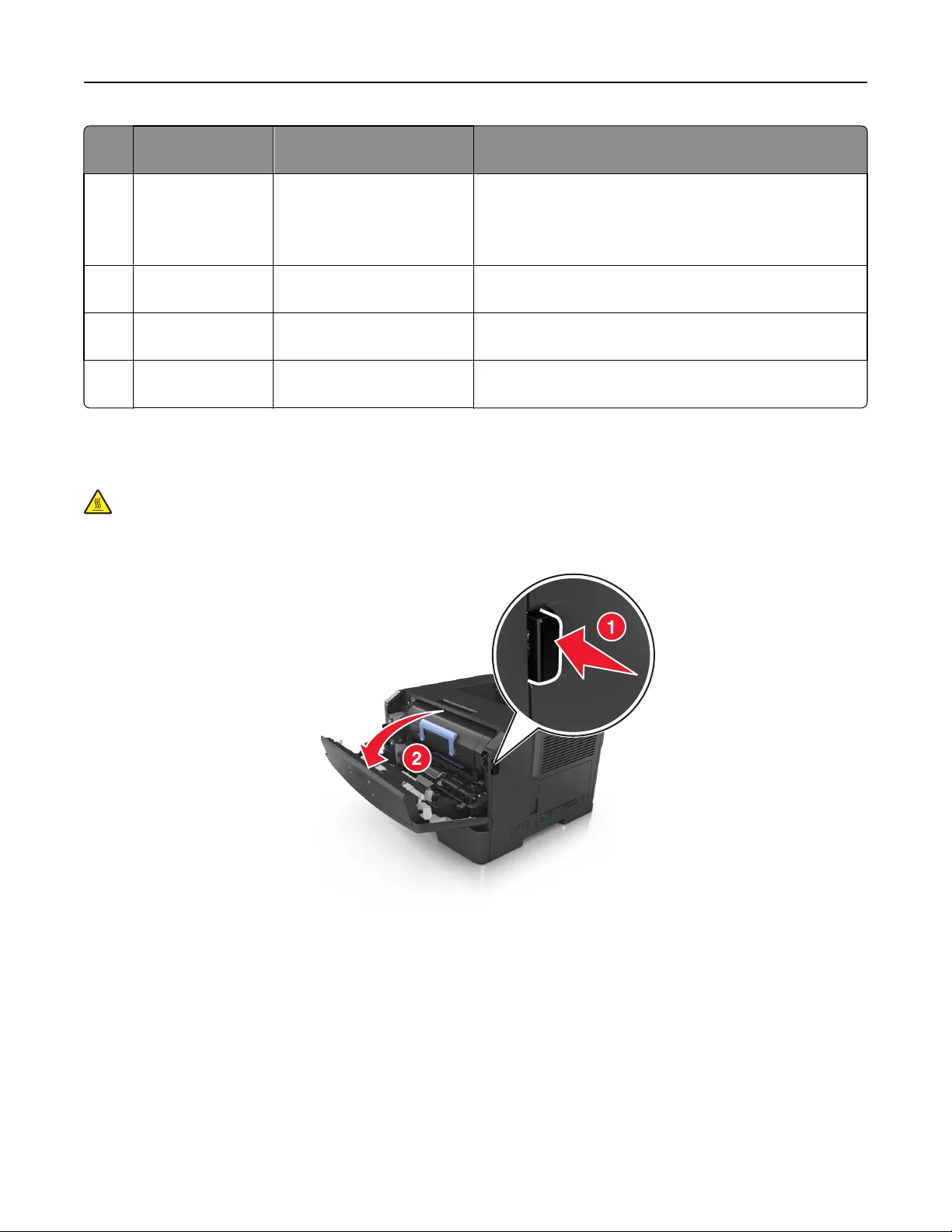 CAUTION—HOT SURFACE: The inside of the printer might be hot. To reduce the risk of injury from a hot