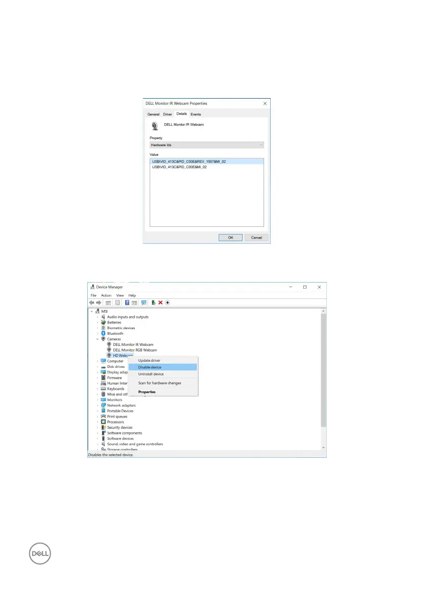 The Value will show the detail hardware ids of this DELL Monitor IR Webcam.