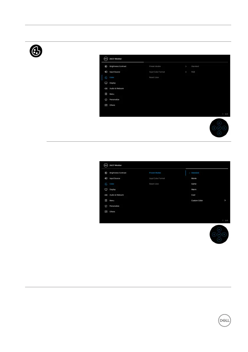 Preset Modes Allows you to choose from a list of preset color