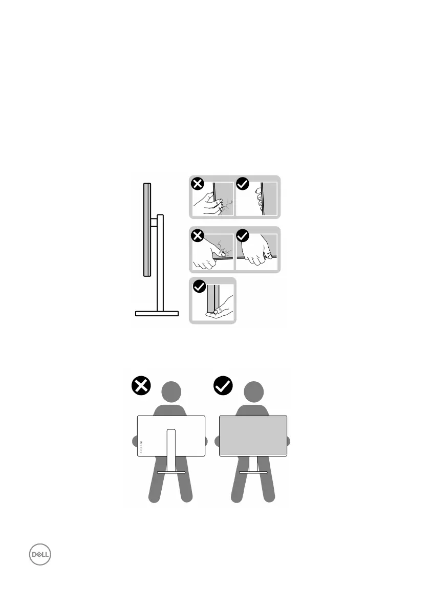 • When lifting or moving the monitor, ensure the screen is facing away from you