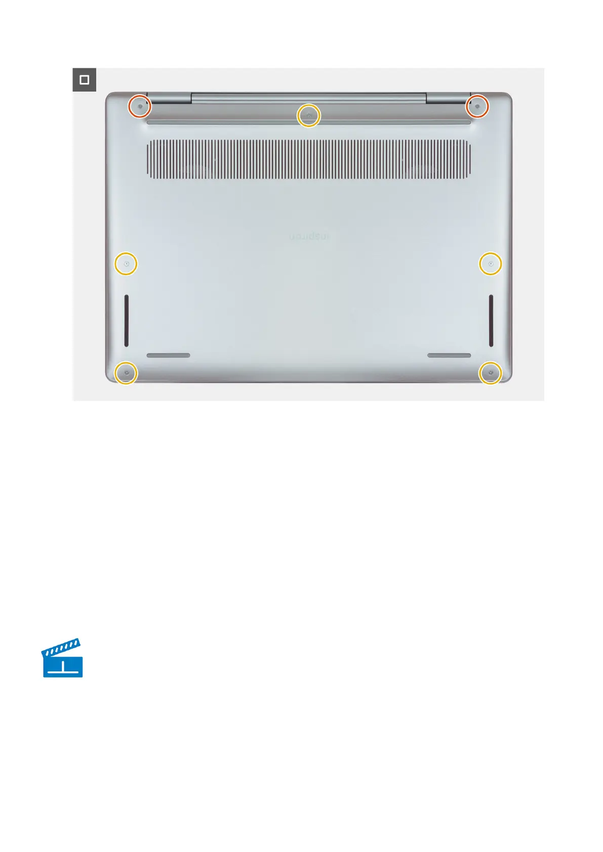 4. Draai de twee geborgde schroeven (M2x7.9) vast en plaats de vijf schroeven (M2x5.5) vast waarmee de onderplaat aan de