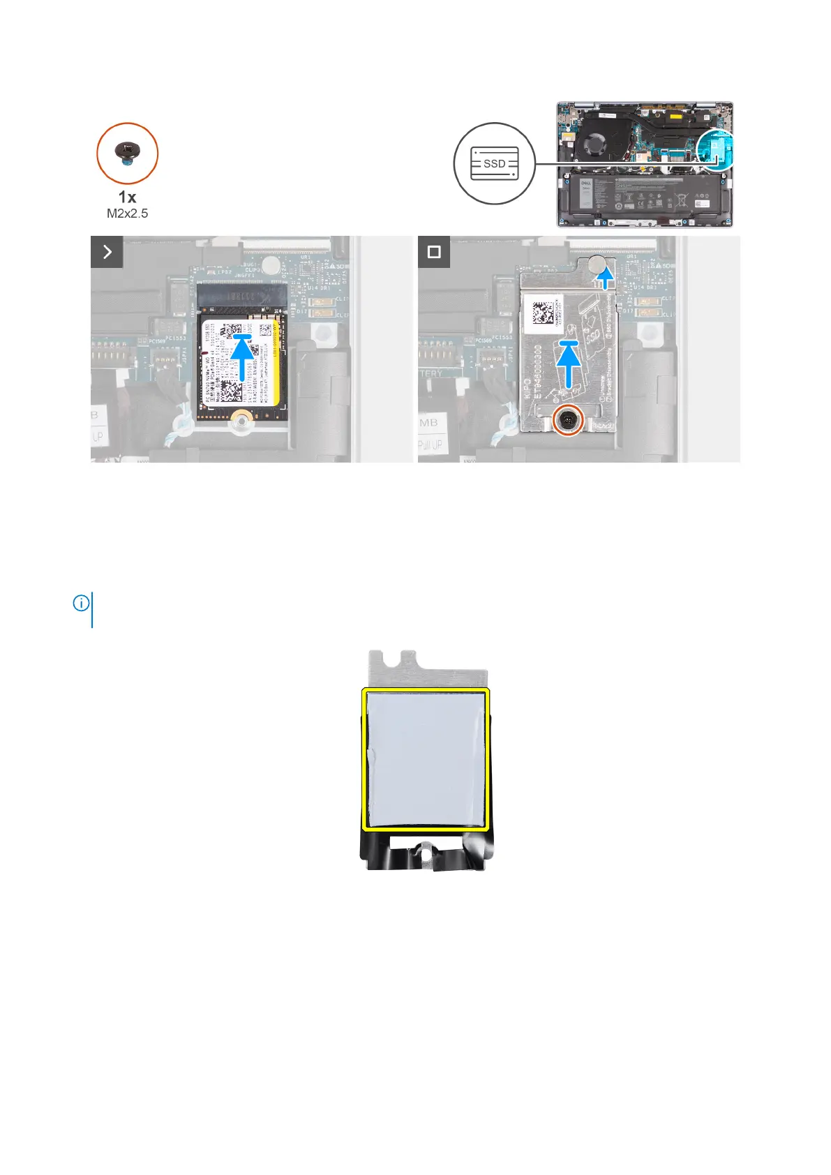 Het thermische schild van de SSD bevat een thermische mat dat aan de onderkant is bevestigd. Zorg ervoor dat u