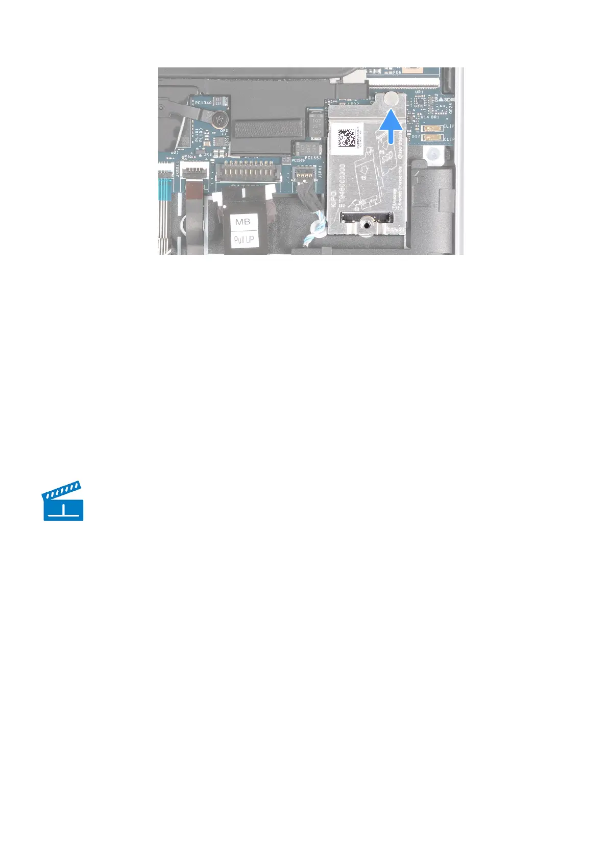 5. Plaats de schroef (M2x2.5) terug waarmee het thermische schild van de SSD en de SSD aan de polssteun- en toetsenbordeenheid