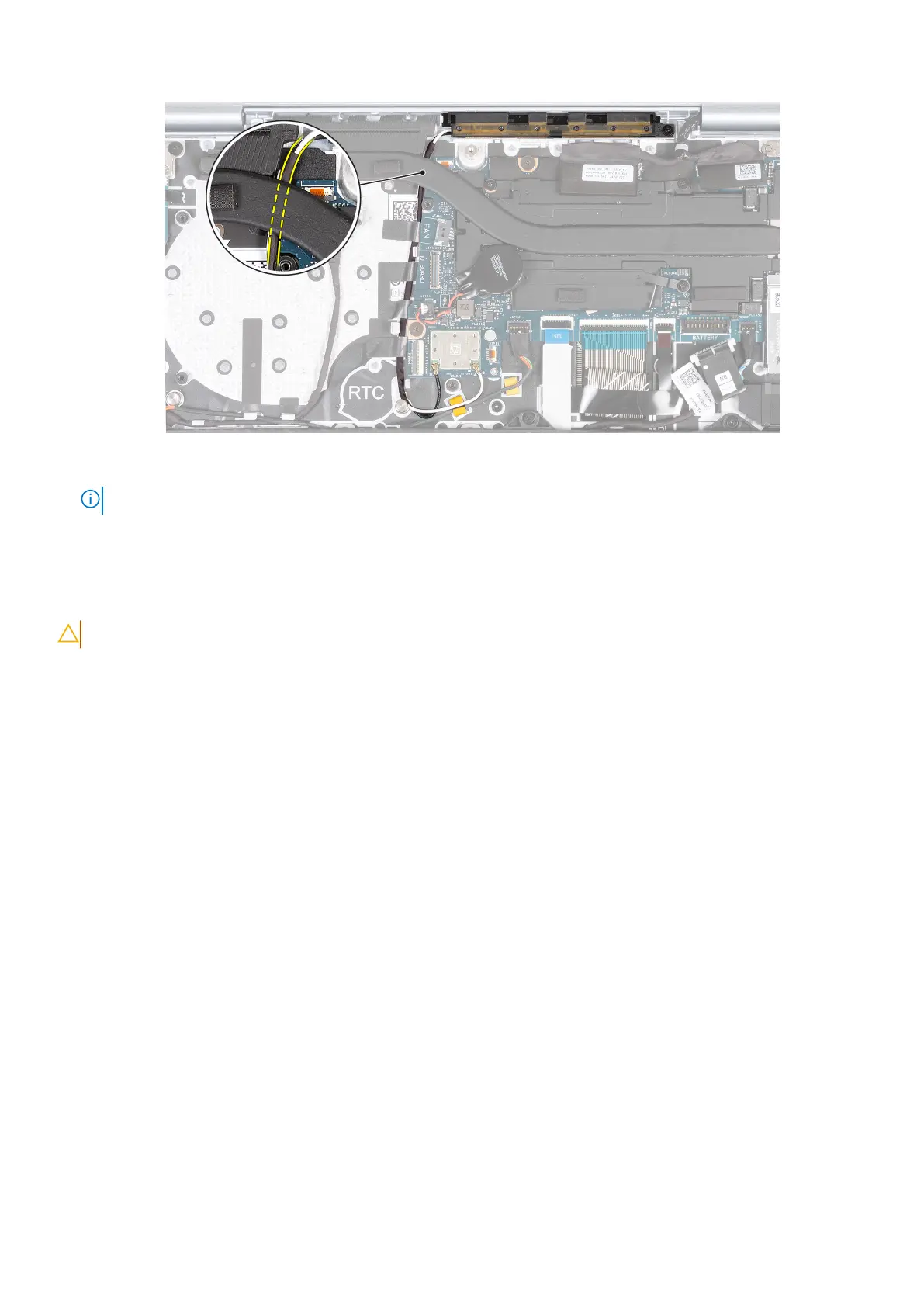 OPMERKING: Zorg ervoor dat u de antennekabels voorzichtig uit de geleiders onder de koelplaat verwijdert.