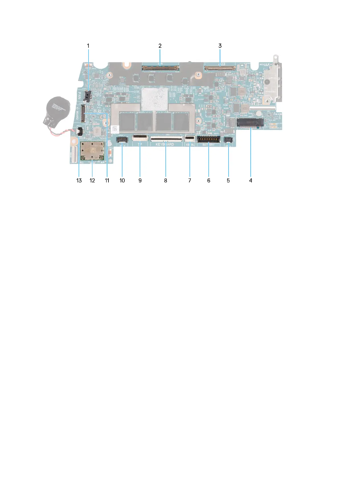 7. Connector van toetsenbord-achtergrondverlichtingskabel (KB BL)