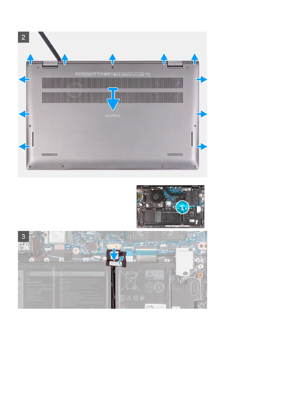 5. Peel the tape that secures the battery cable to the battery and palm-rest and keyboard assembly.