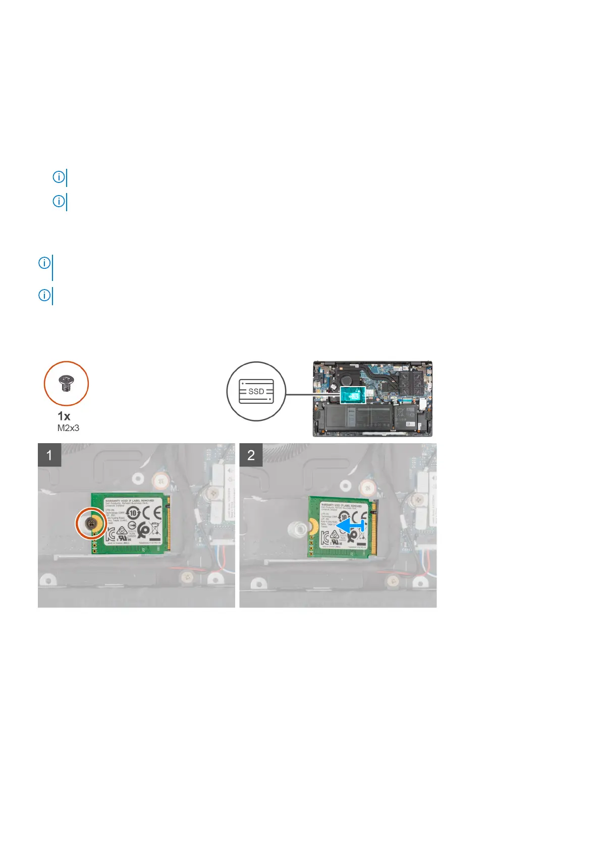 1. Remove the screw (M2x3) that secures the 2230 solid-state drive to the palm-rest and keyboard assembly.