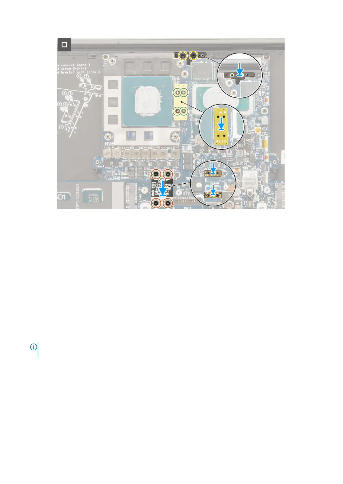 2. Replace the nine screws (M2x4) to secure the system board to the palm-rest assembly.