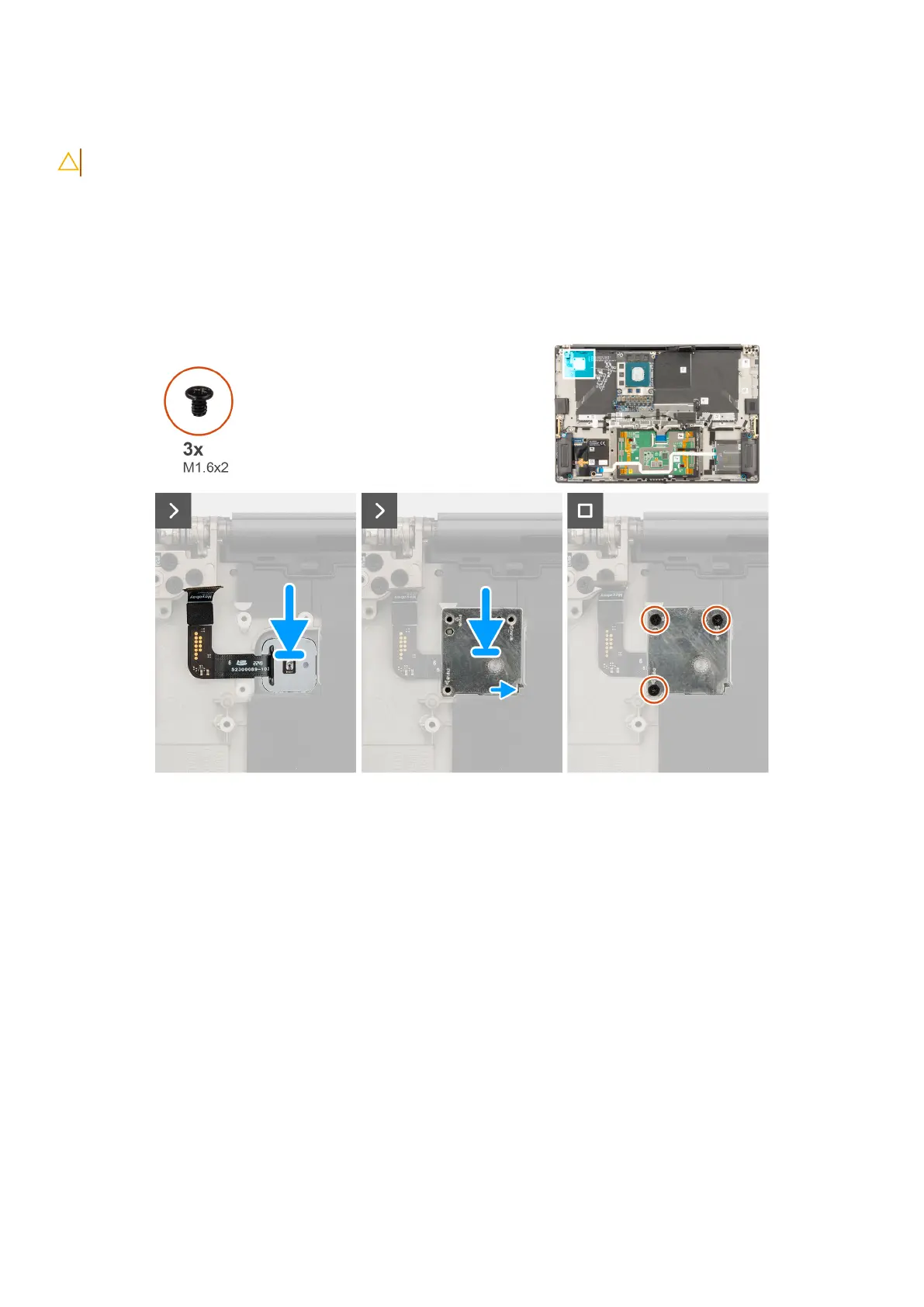 3. Replace the three screws (M1.6x2) to secure the power button with fingerprint reader in place.