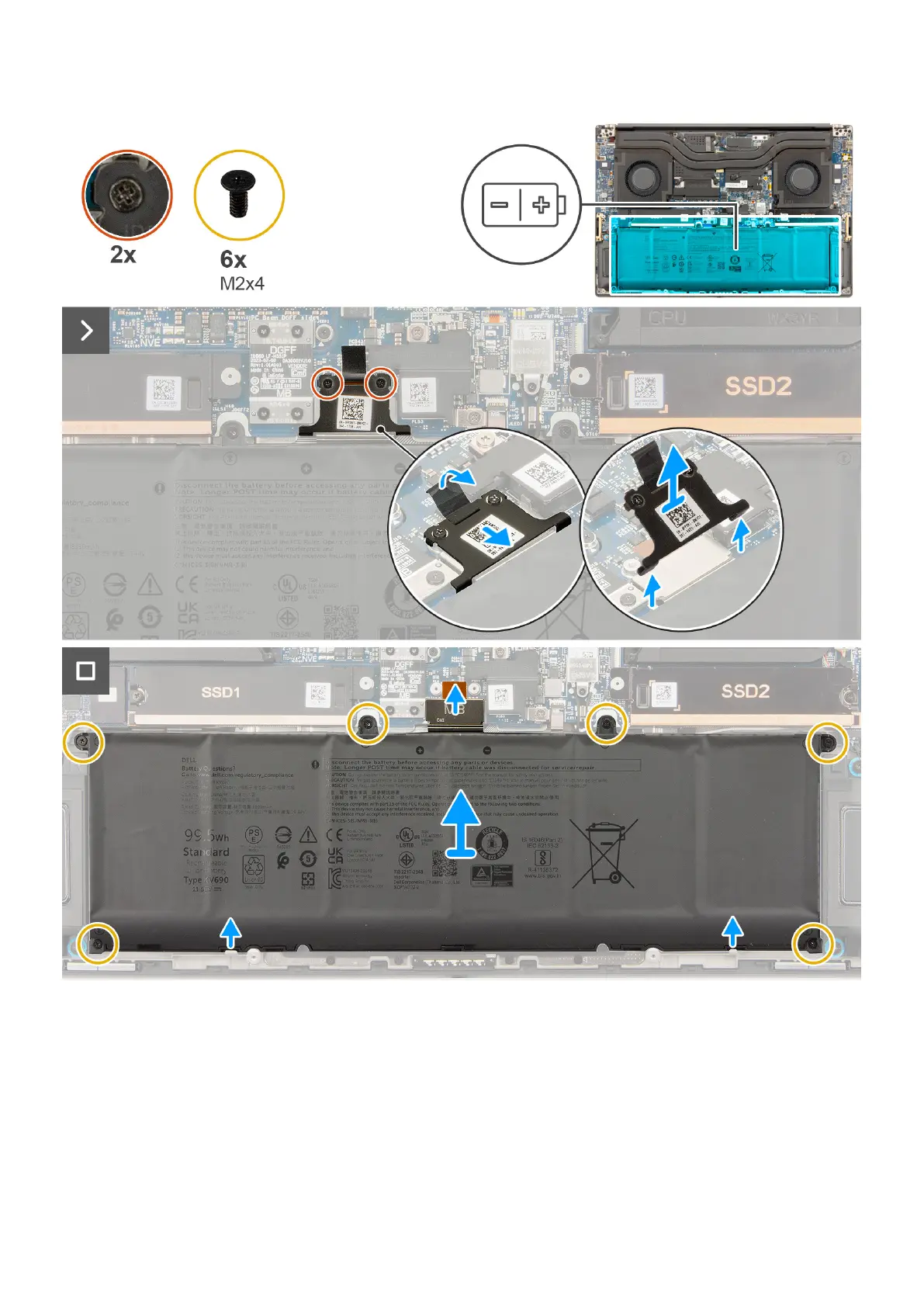 3. Remove the six screws (M2x4) that secure the battery to the palm-rest assembly.