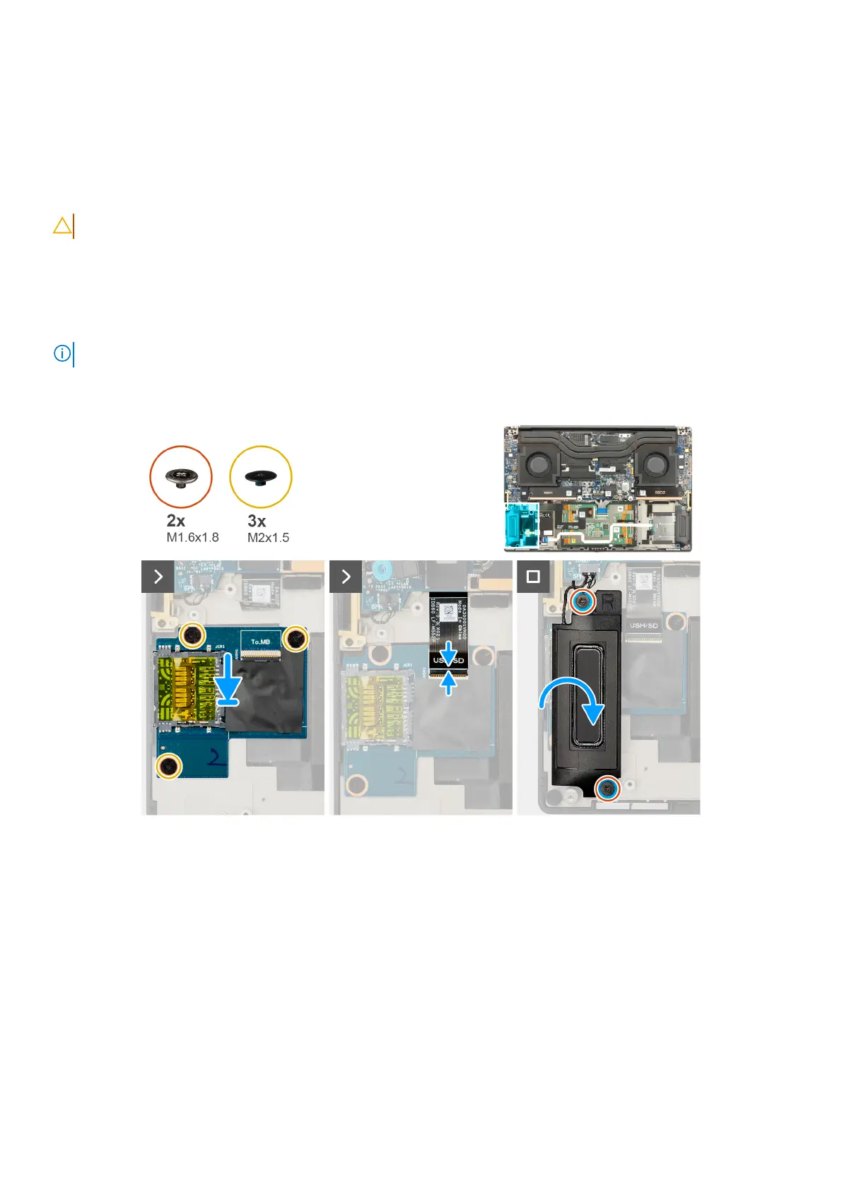 5. Replace the two screws (M1.6x1.8) to secure the right speaker in place.