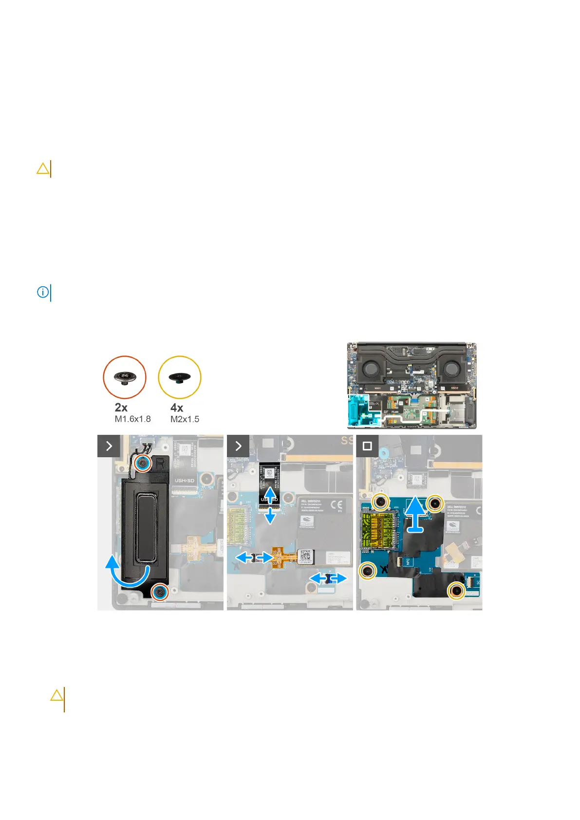 1. Remove the two screws (M1.6x1.8) that secure the right speaker in place.