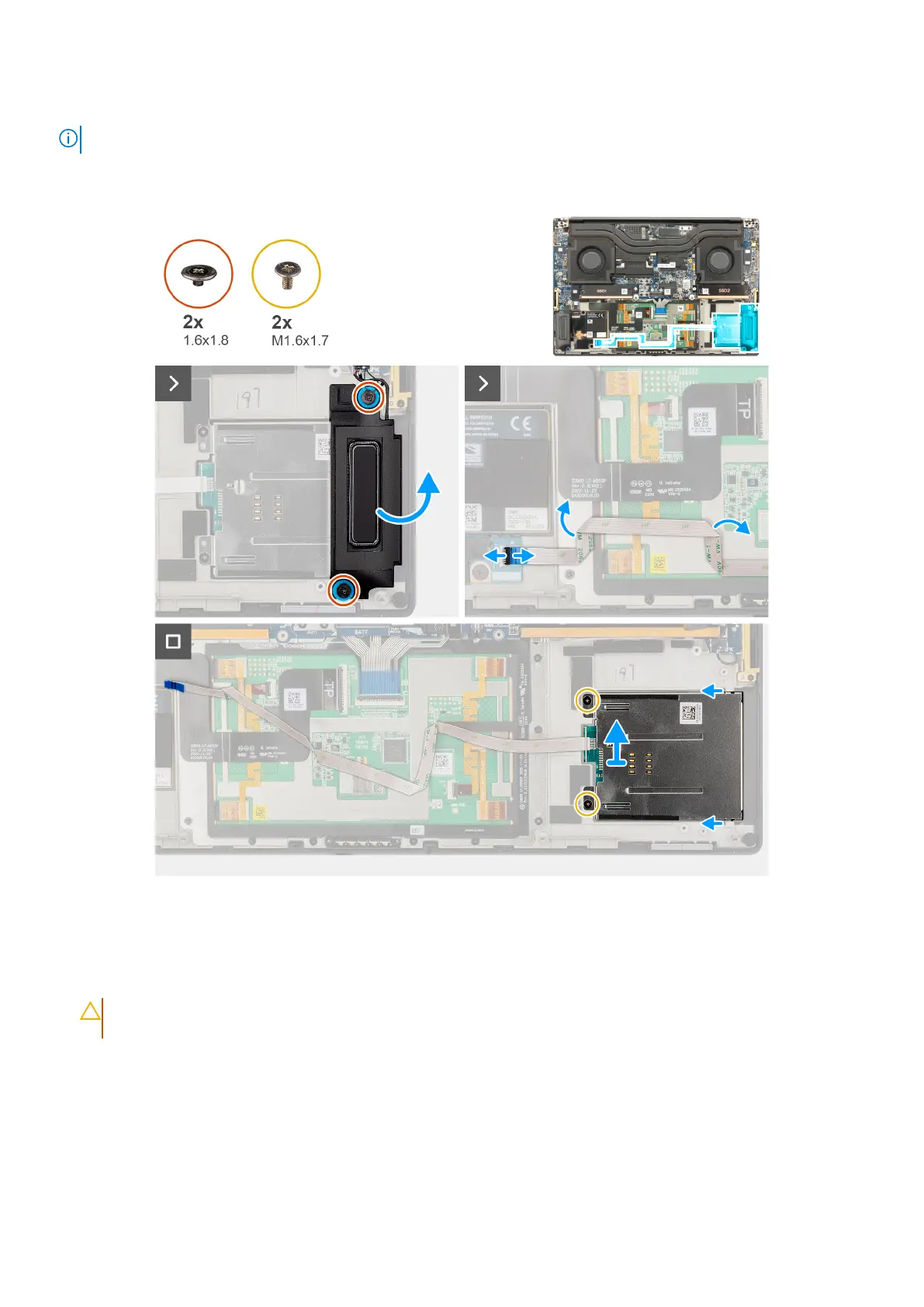 1. Remove the two screws (M1.6x1.8) that secure the left speaker in place.