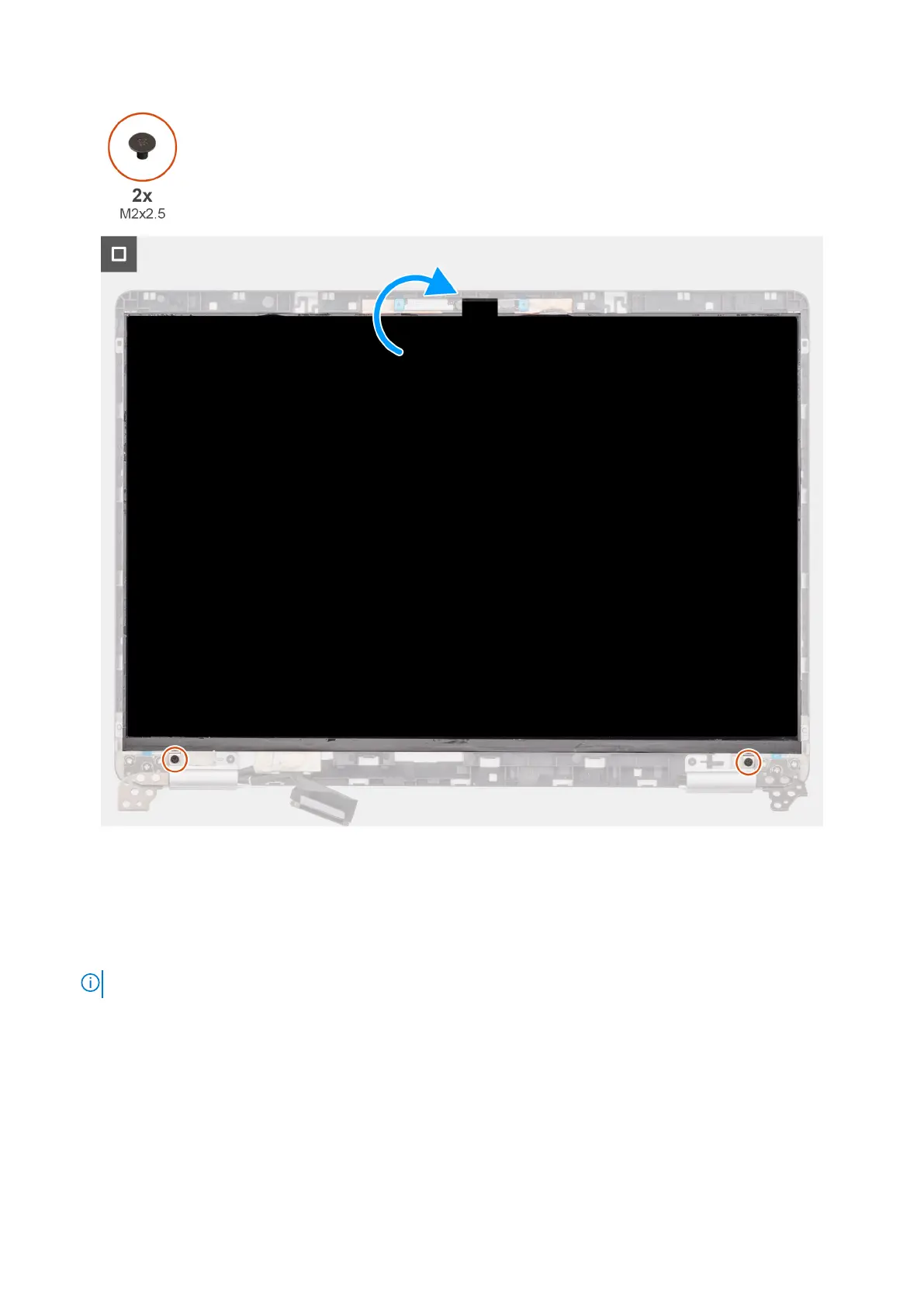 4. Replace the two screws (M1.6x1.4) to secure the display panel to the display back cover.