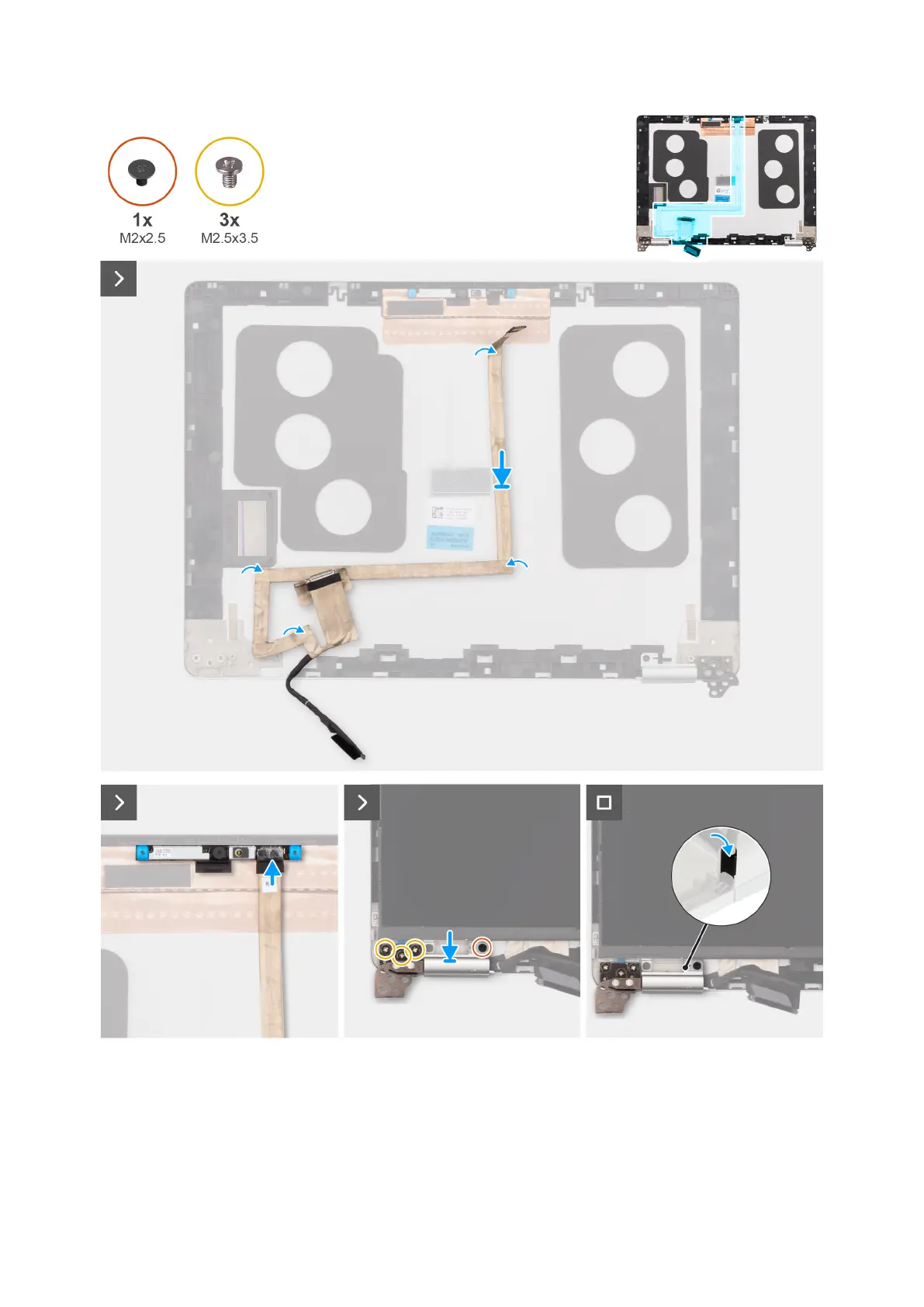 3. Adhere the tape that secures the display cable to the display back cover.