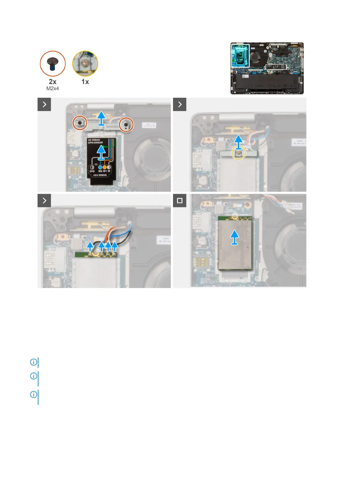 4. Disconnect the antenna cables from the 5G WWAN card.
