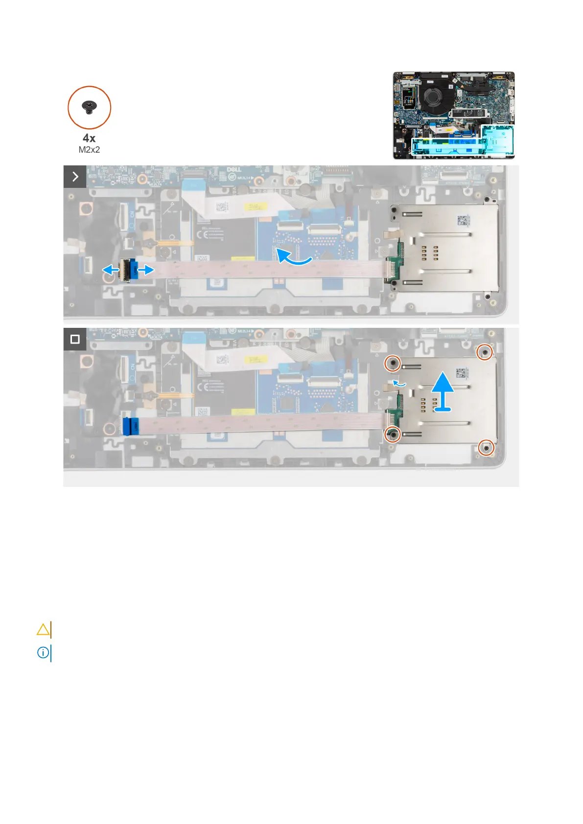 2. Remove the four screws (M2x2) that secure the smart-card reader to the palm-rest assembly.