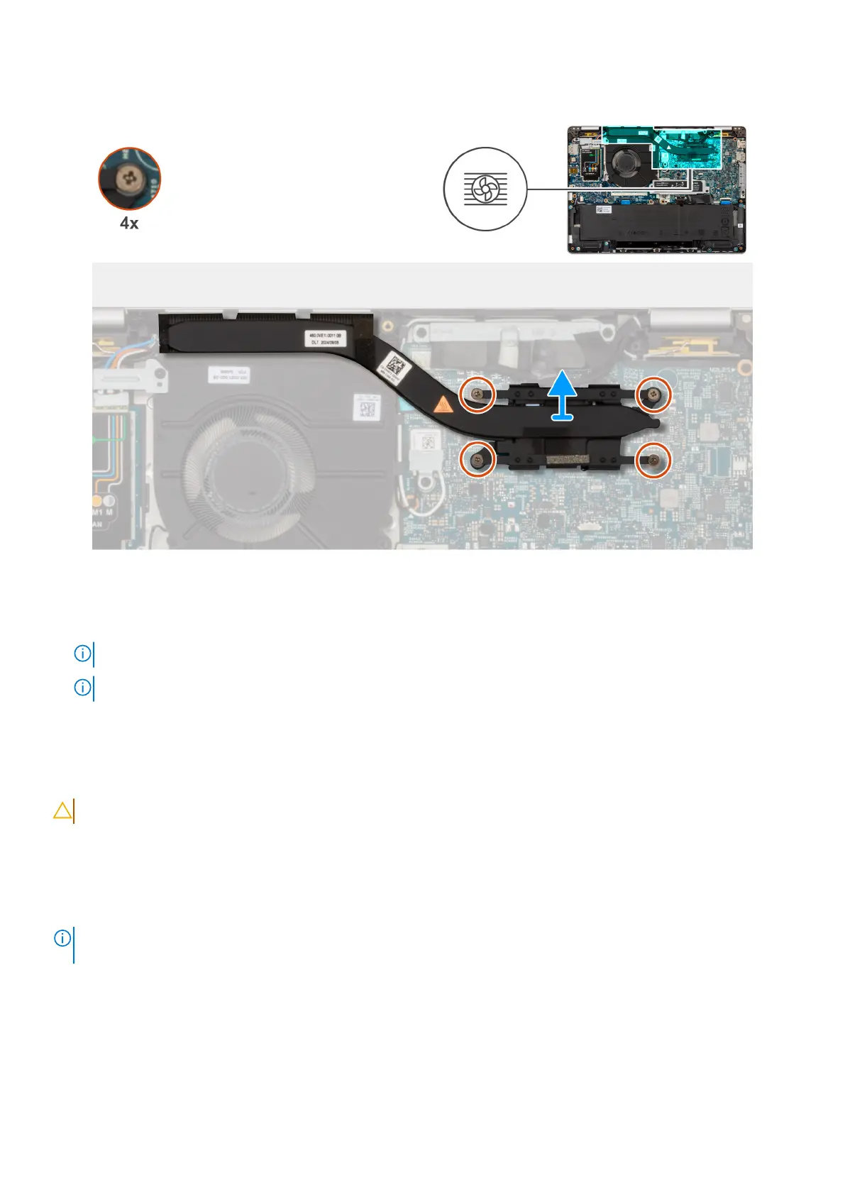 NOTE: Loosen the captive screws in the reverse sequential order mentioned on the heat sink [4 > 3 > 2 > 1].