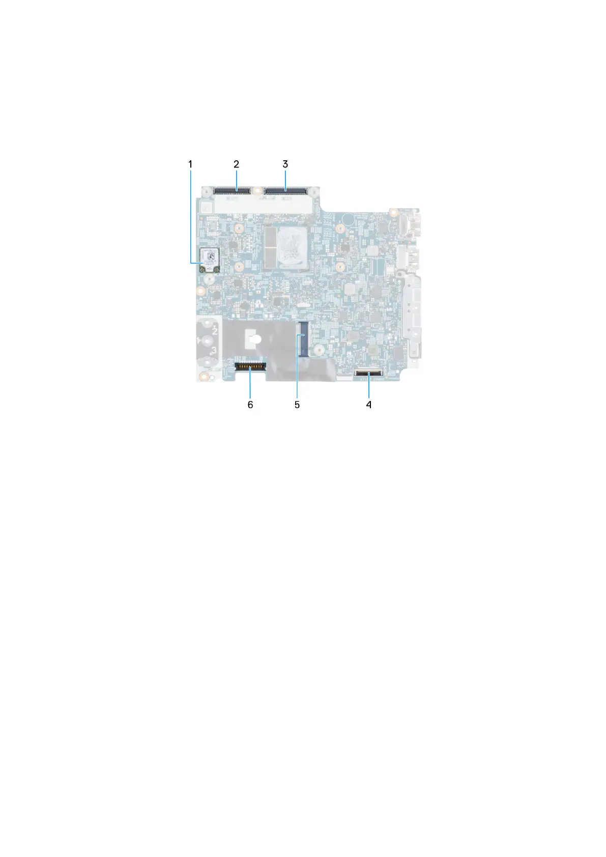 5. Sold state drive slot 6. Battery connector