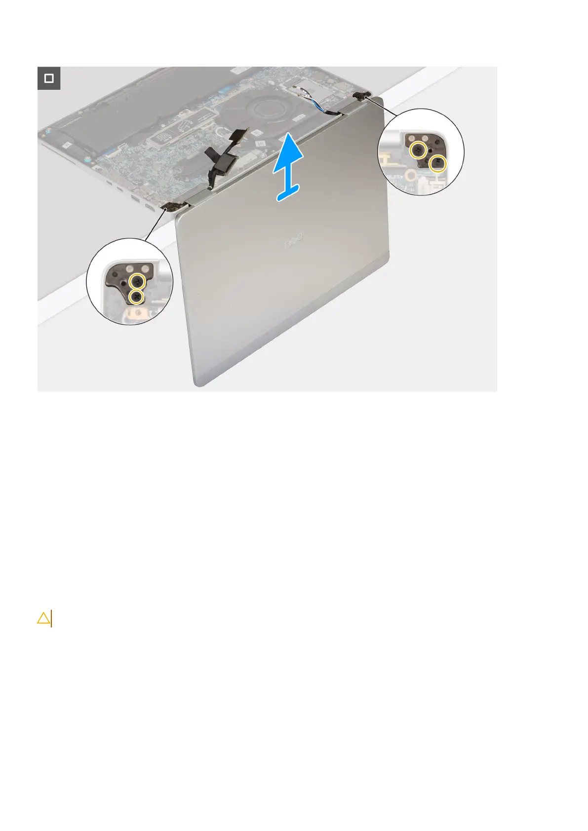 8. Remove the four screws (M2.5x5) that secure the left and right display hinges to the palm-rest assembly.