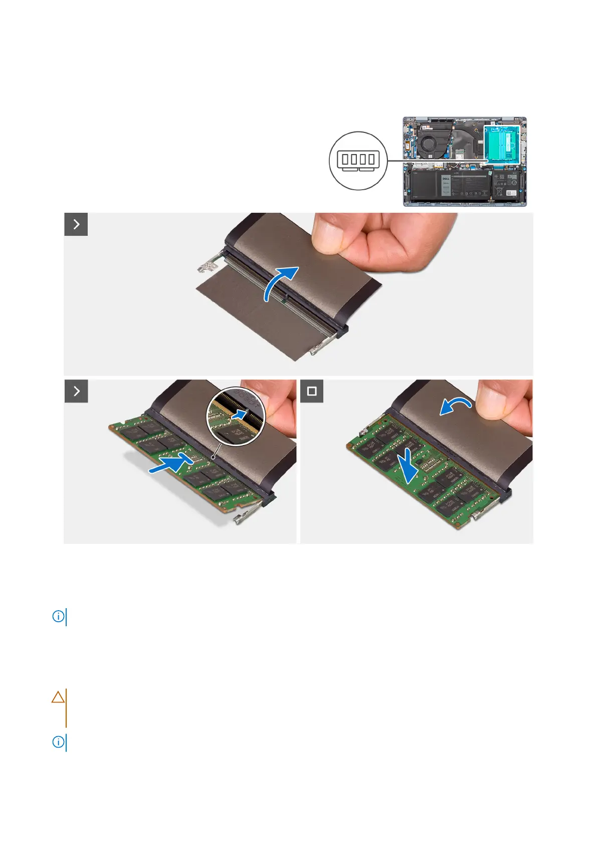 NOTE: If you do not hear the click, remove the memory module and reinstall it.