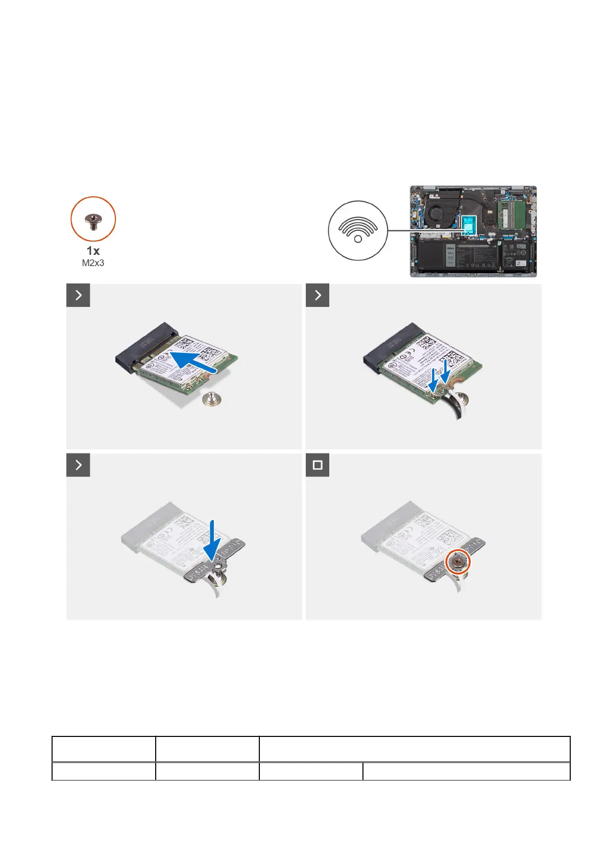 The following images indicate the location of the wireless card and provide a visual representation of the installation procedure.