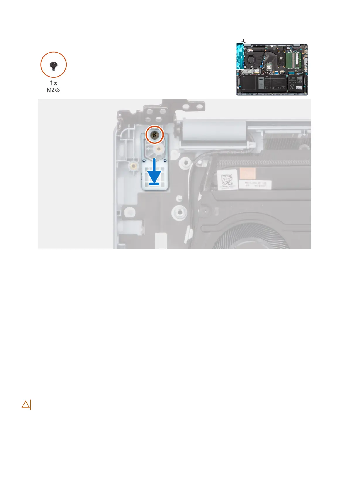 3. Replace the screw (M2x3) to secure the power button to the palm-rest and keyboard assembly.