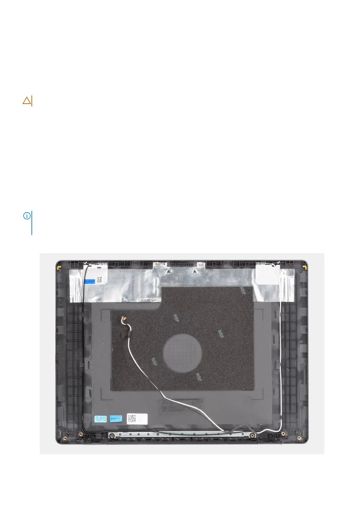 The image below shows the display back-cover and antenna assembly after the Prerequisites have been performed.