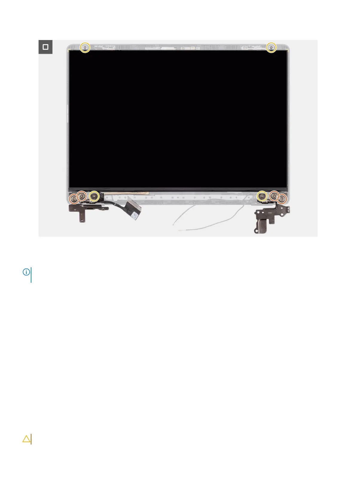 The display-panel assembly is preassembled with the display brackets as a single service part. Do not pull theStretch