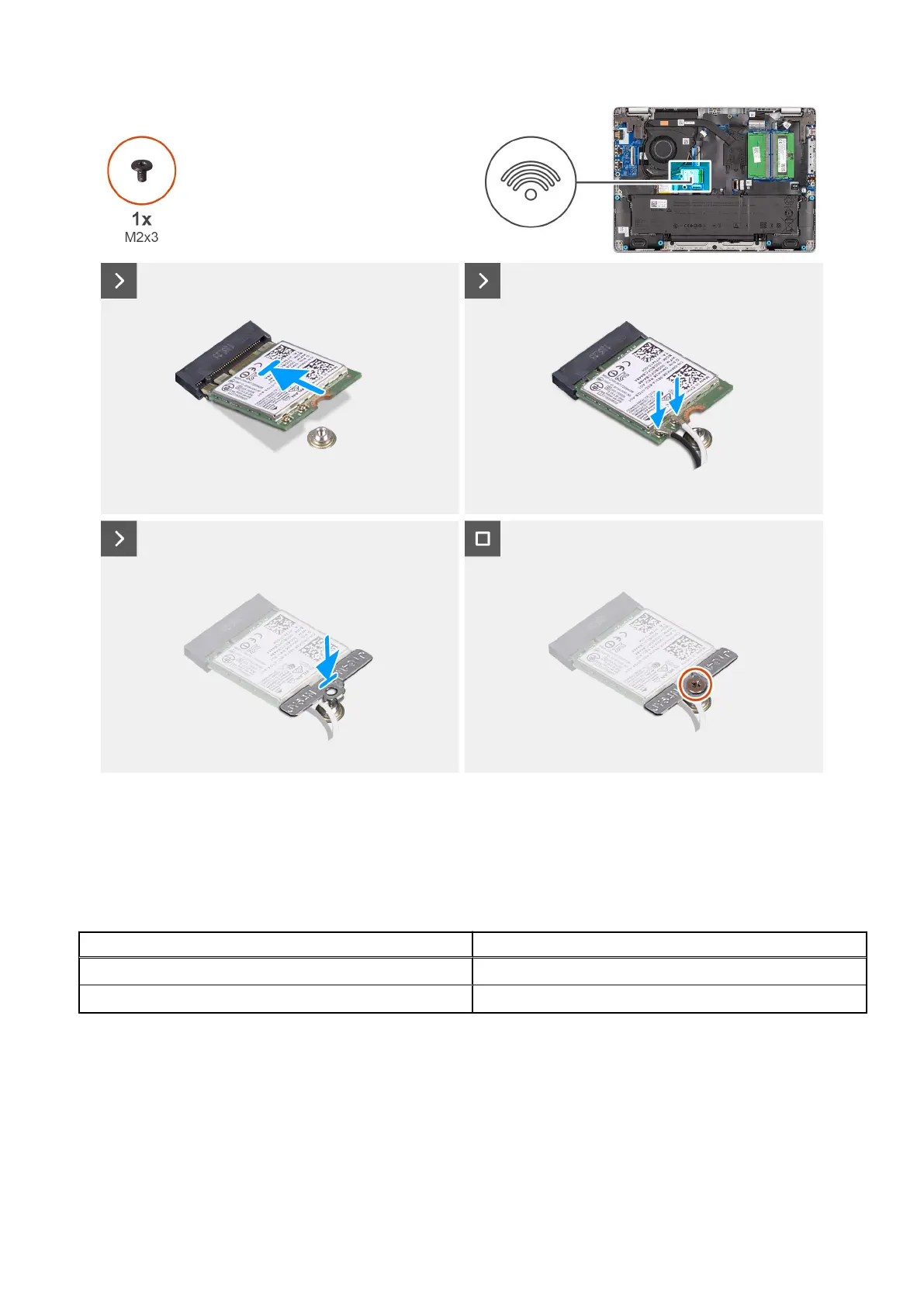6. Replace the screw (M2x3) that secures the wireless-card bracket and the wireless card to the system board.
