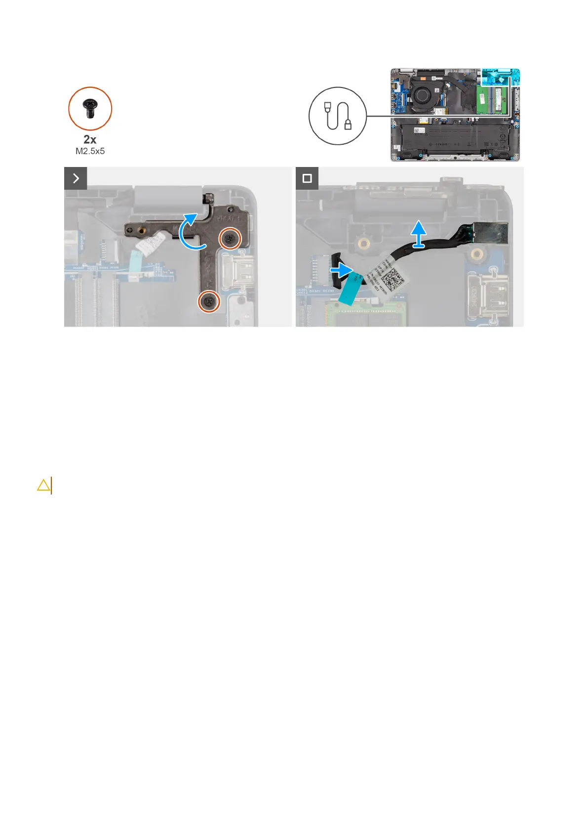 1. Remove the two screws (M2.5x5) that secure the left display-hinge to the palm-rest assembly.