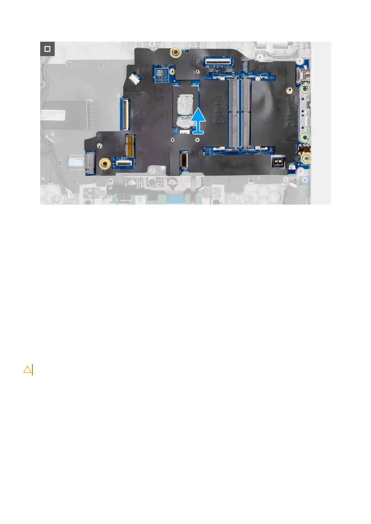 5. Remove the three screws (M2x3) that secure the system board to the palm-rest assembly.