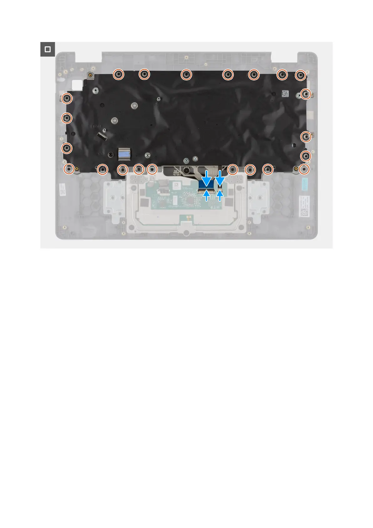 3. Replace the 22 screws (M2x2.2) that secure the keyboard to the palm-rest assembly.