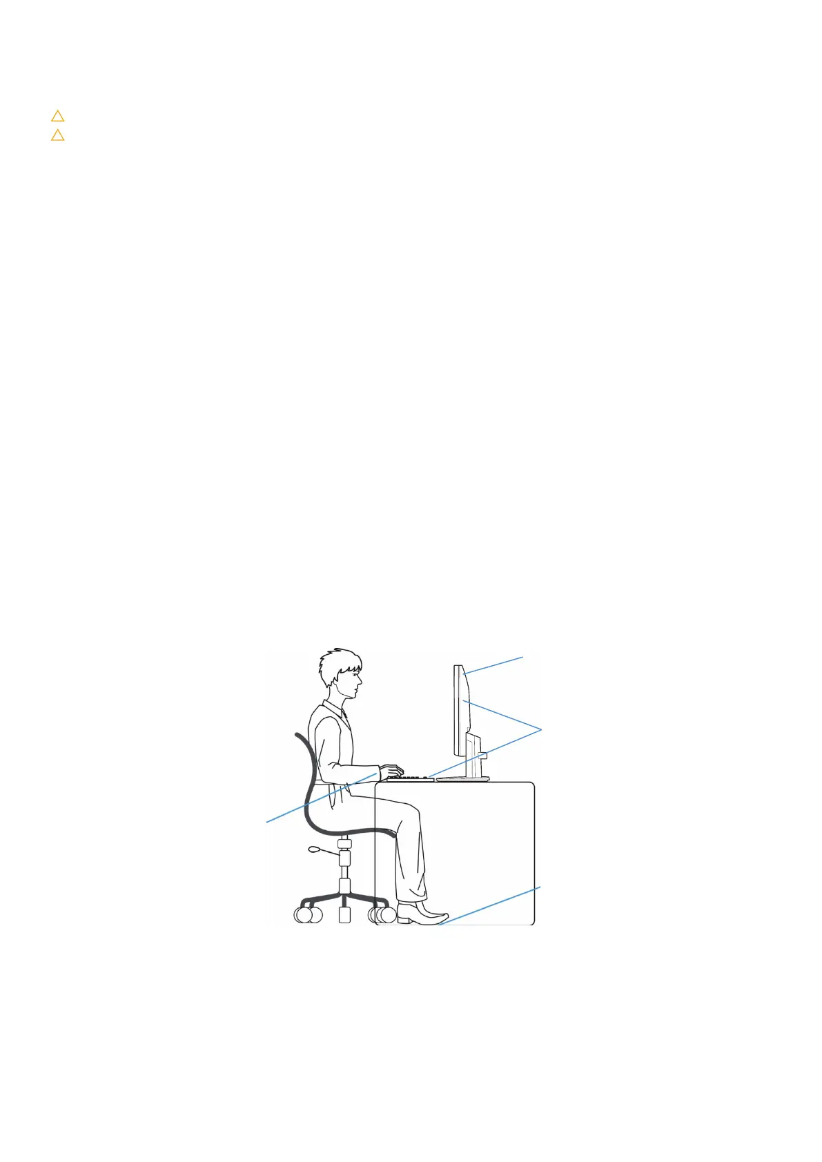 • Zorg dat het monitorscherm op ooghoogte of iets lager staat wanneer u voor de monitor zit.