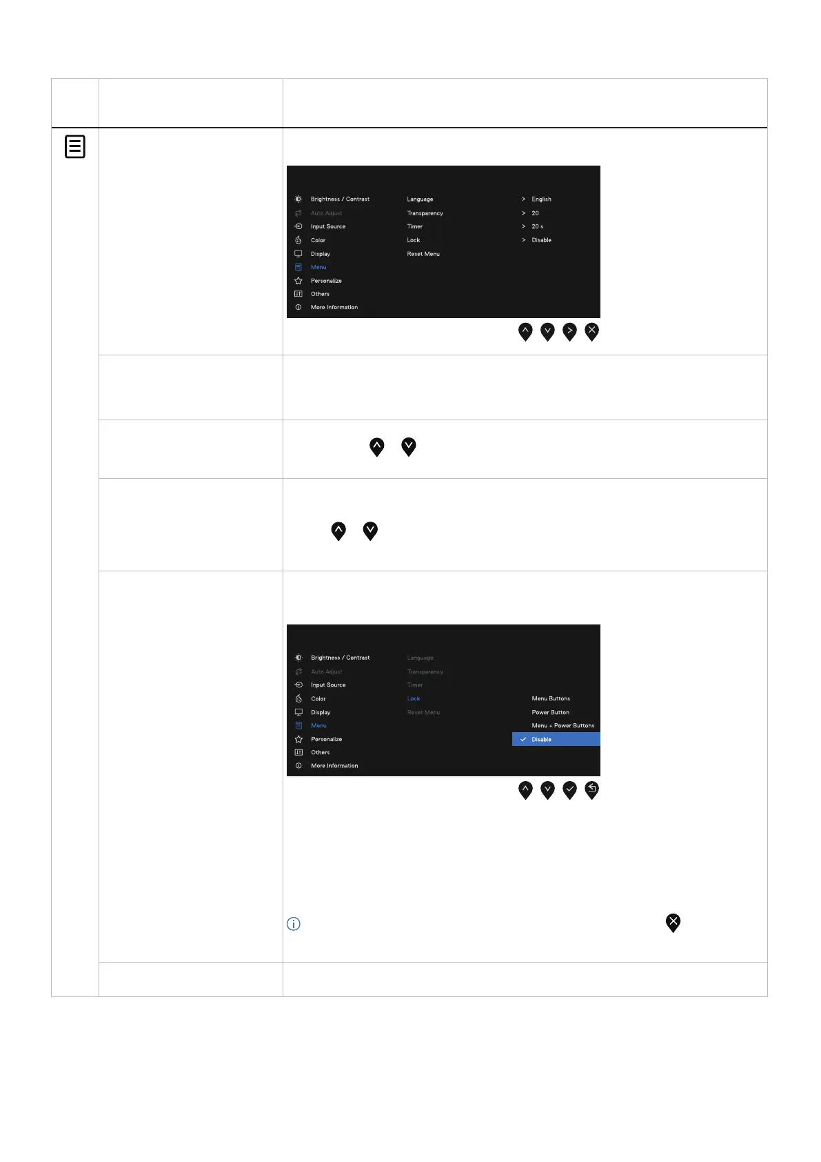 OPMERKING: Om de knop(pen) te ontgrendelen, houdt u de toets op de monitor