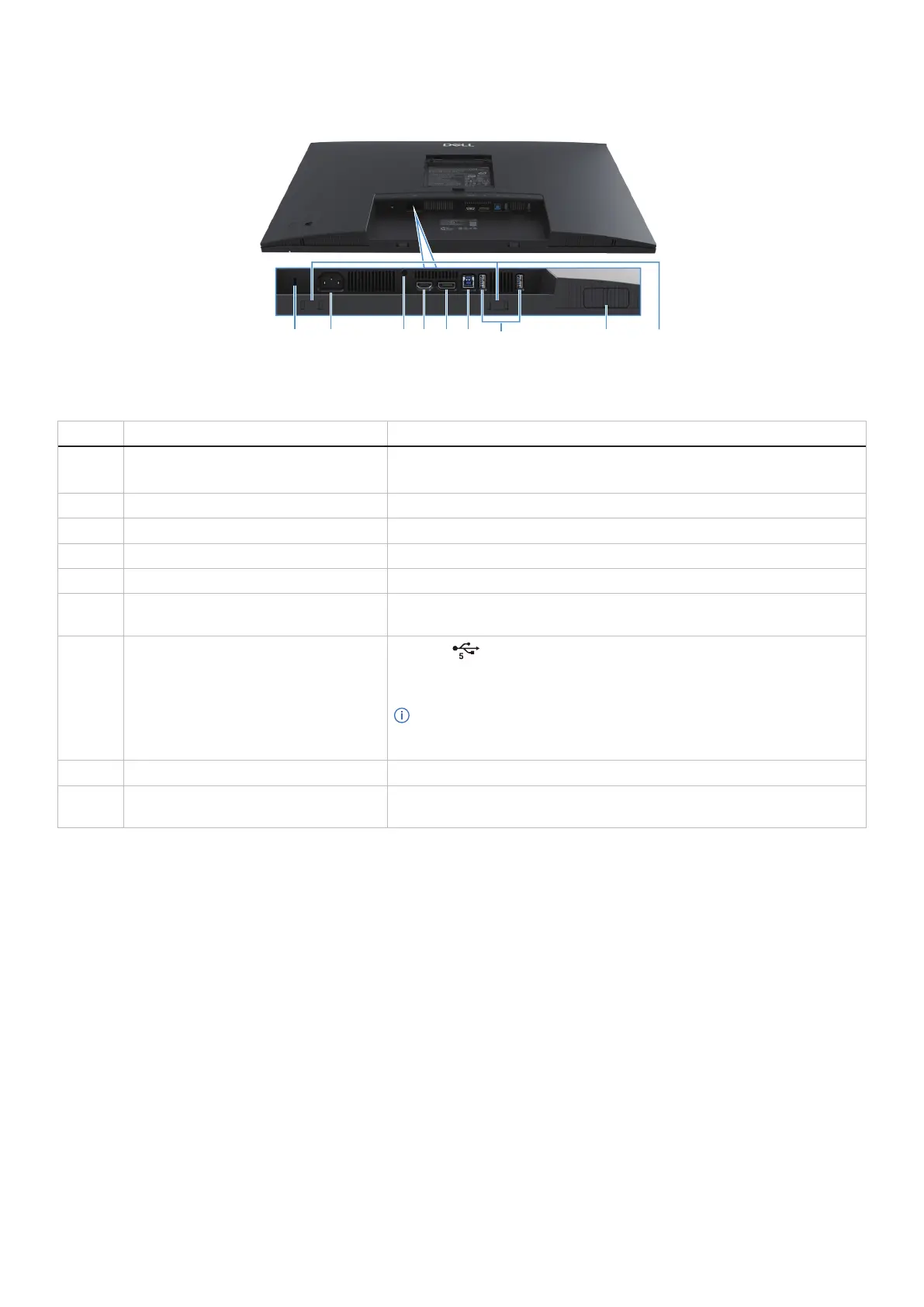 6 USB 5Gbps Type-B upstream port Connect the USB cable that came with your monitor to the computer. Once