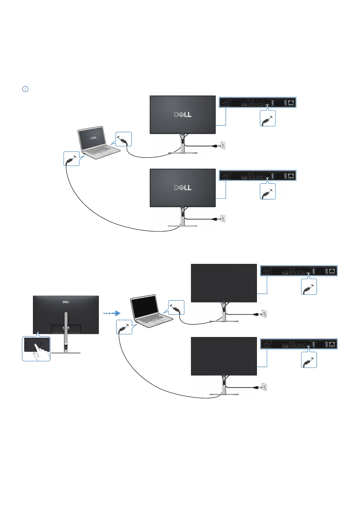 The Dell personal computer* Ultra platform has two USB-C ports, so both Monitor 1 and Monitor 2 power state can sync with the