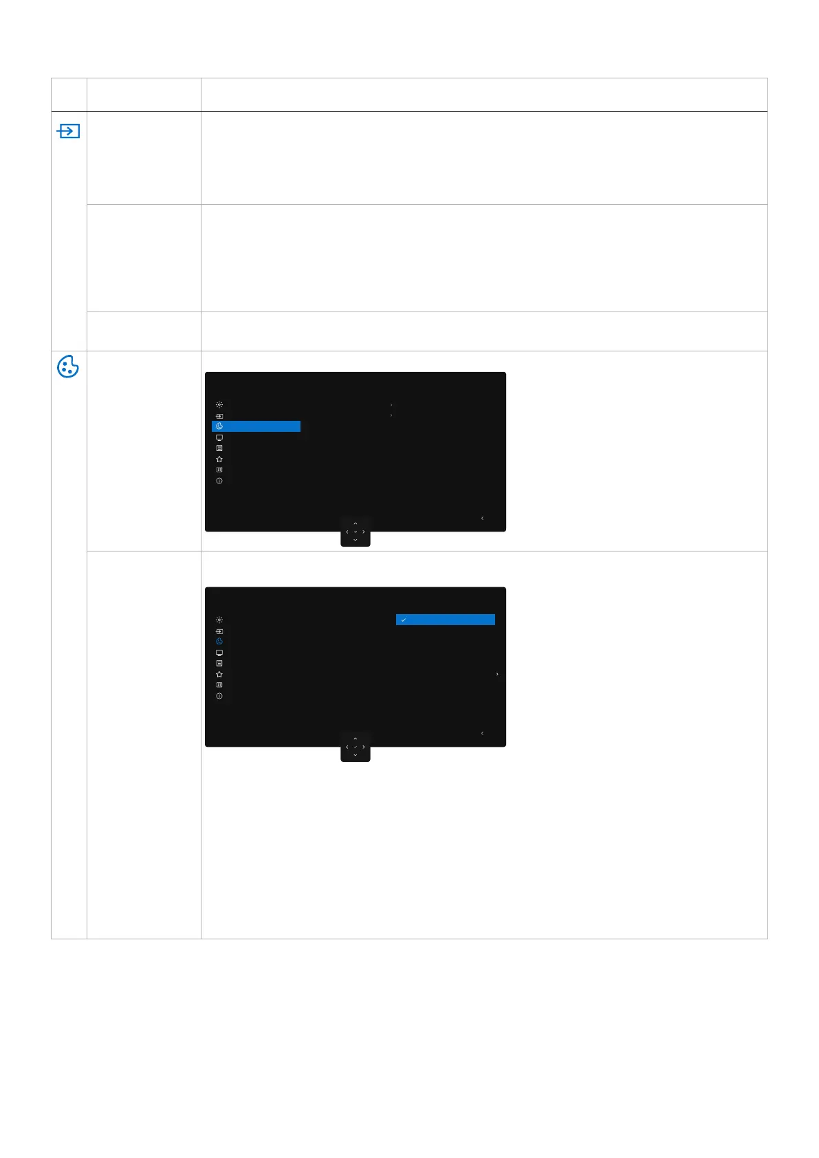 • Custom Color: Allows you to manually adjust the color settings. Press the Joystick left and right