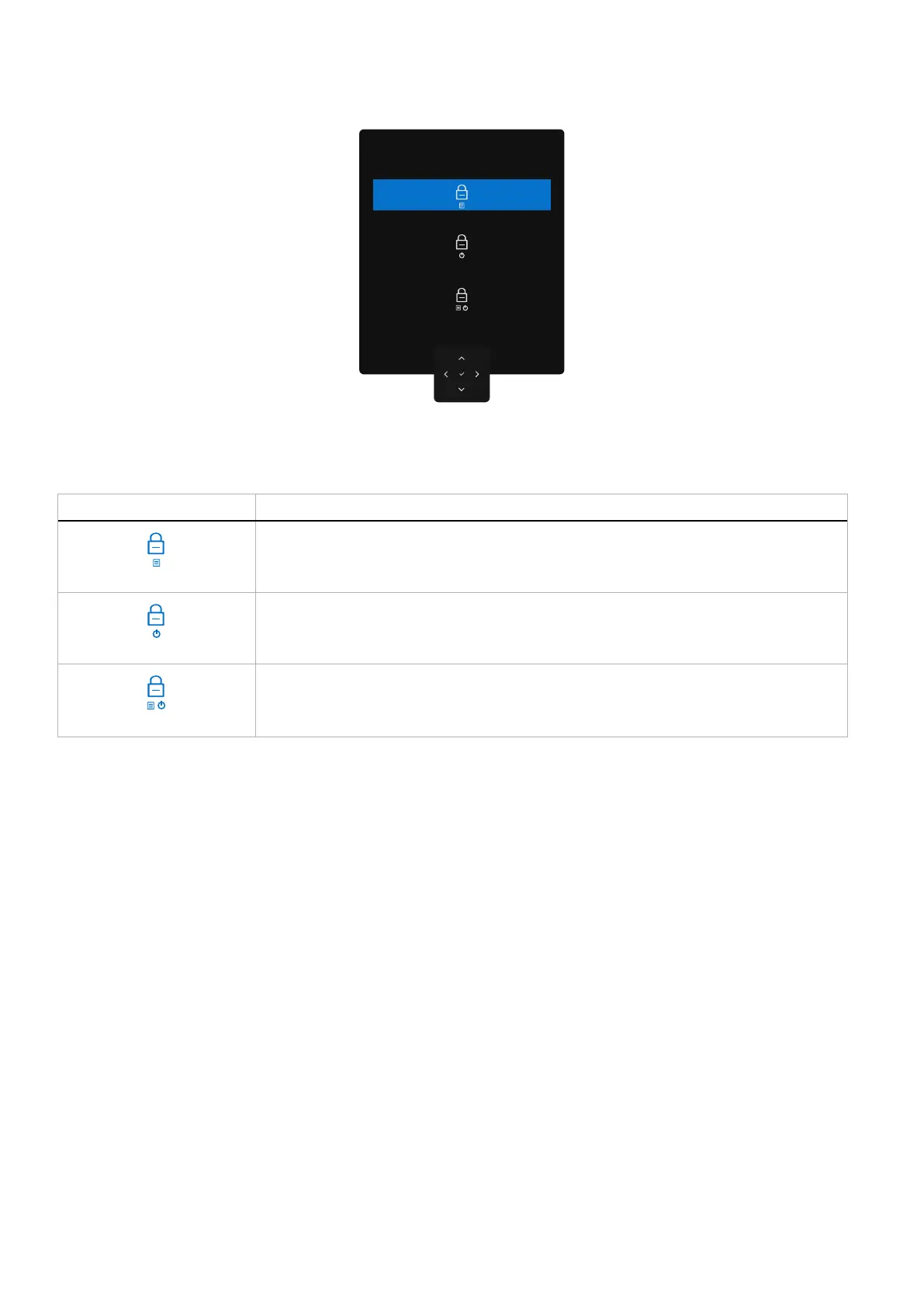 Table 31. Lock buttons menu description