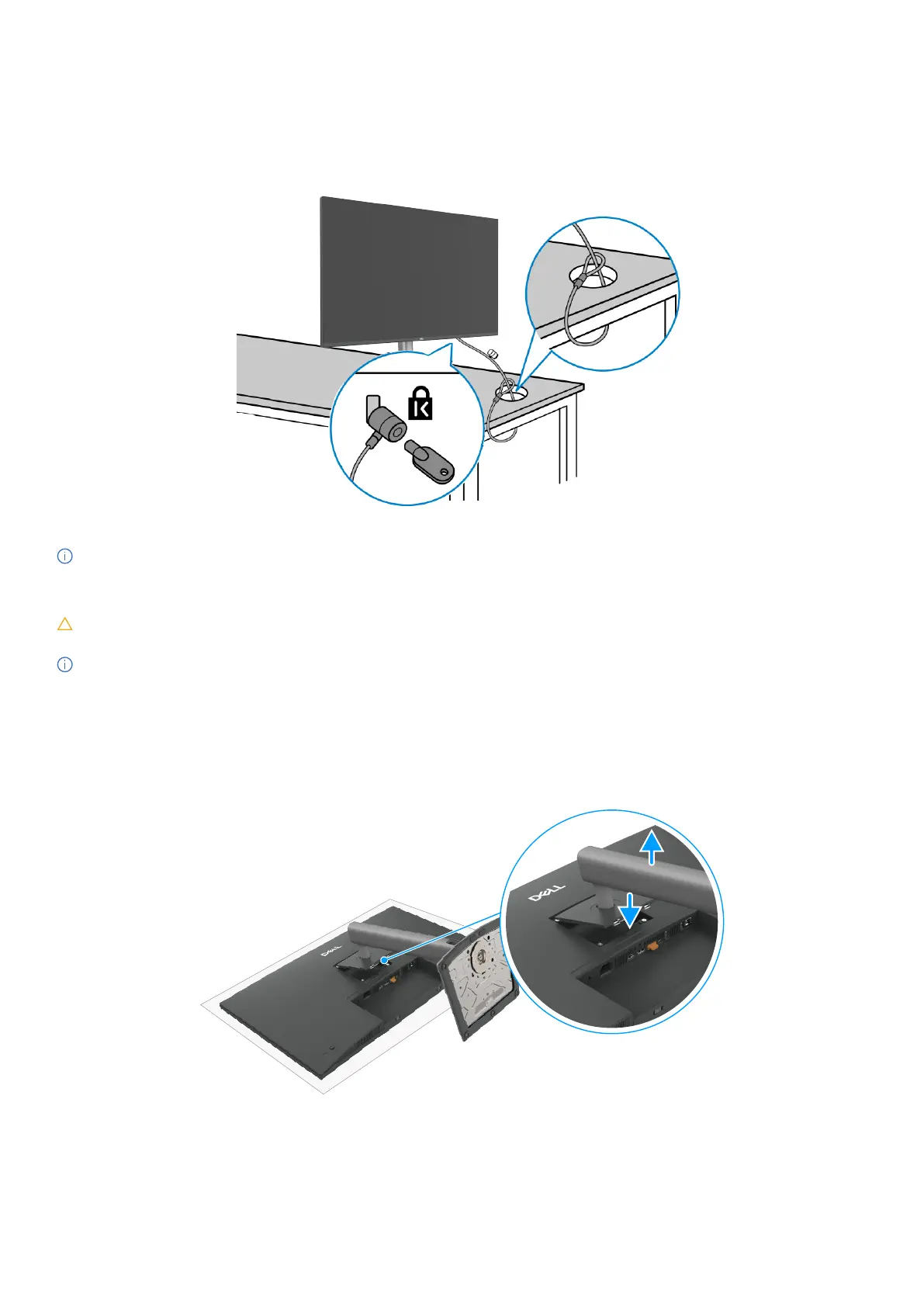 The security-lock slot is located at the bottom of the monitor (see Security lock slot). Secure your monitor to a table using the