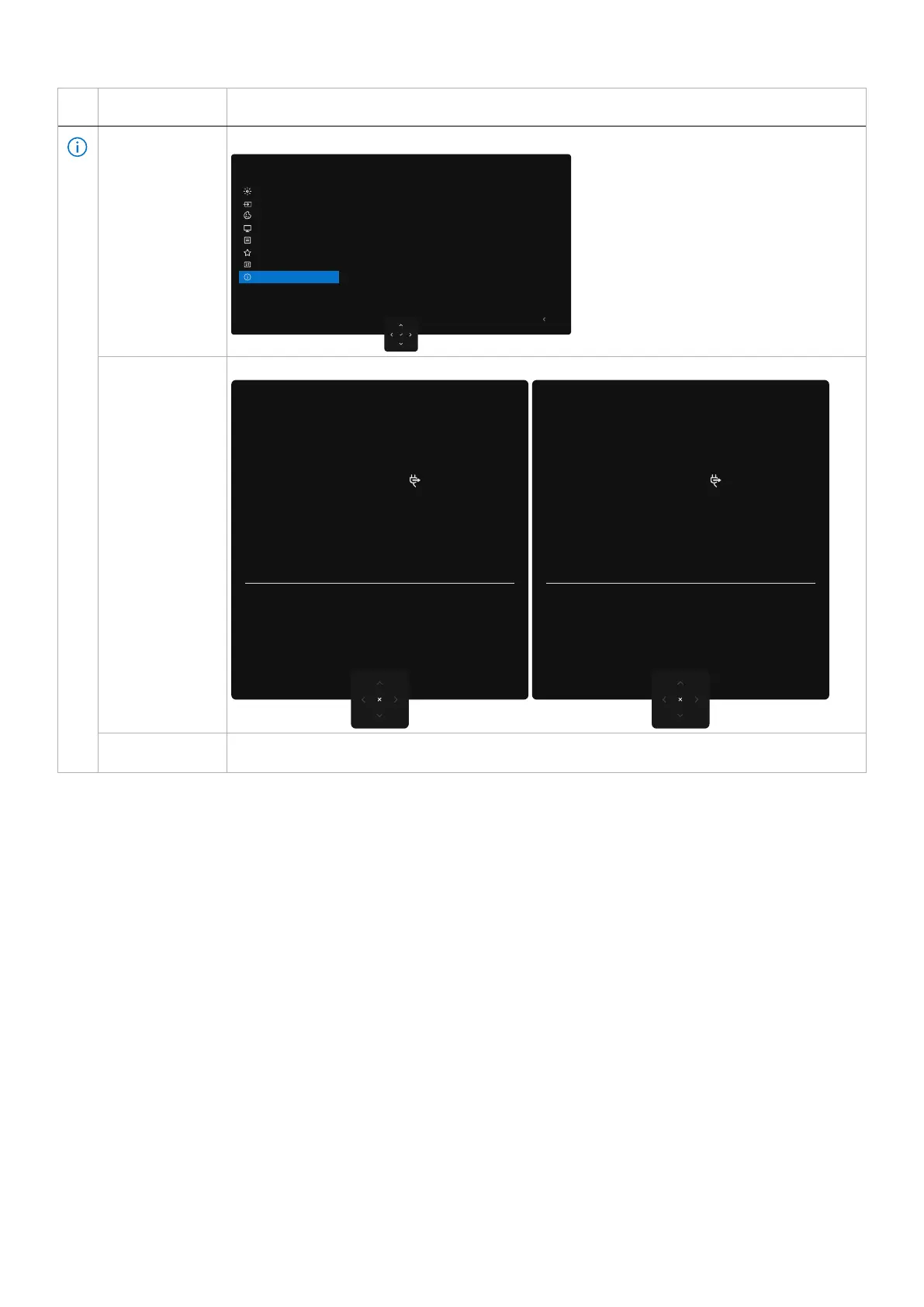 Display Info Displays the current settings of the monitor. Press the joystick to confirm the selection.